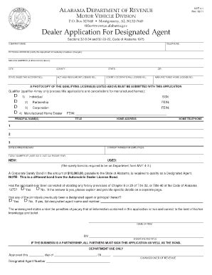 Alabama Designated Agent Application . We hope you have a great training experience. The date of the vehicle’s purchase, and whether the vehicle is new or used.