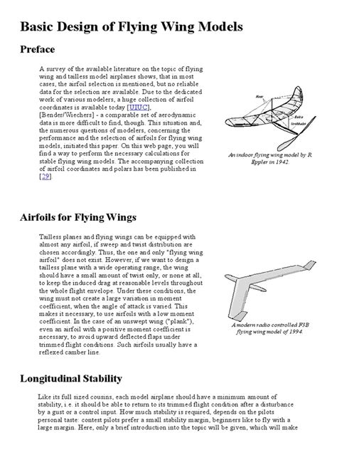 The result is a stable model with smooth flying characteristics. Similar aircraft designs, that are not technically flying wings, are sometimes casually referred to as such. Due to the dedicated work of various modelers, a huge collection of airfoil coordinates is.